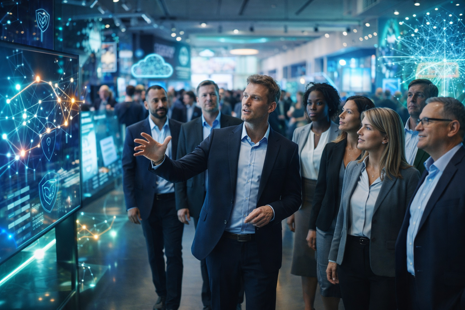 In geführten Touren lernst du innovative Anwendungen, praxisnahe Best Practices und marktführende Partner kennen. Vor allem aber bekommst du Antworten auf echte unternehmerische Fragen – verständlich und greifbar.